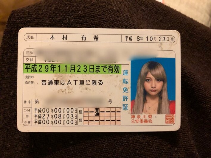 運転免許取得時の写真には、金髪のロングヘアの当時18歳のゆきぽよさんの姿が。