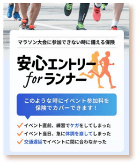 これらのランナーの声を踏まえ、マラソンに挑戦するランナーが安心してエントリーできるよう、不測の事態で大会に出場できなかった場合のエントリー費用を補填する商品を創設いたしました。