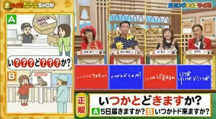 正解は「いつかとどきますか(5日届きますか?/いつかトド来ますか?)」。沢田さんと林さんの2人が正解。