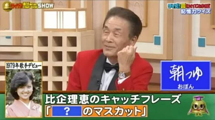 最後は、キャッチフレーズ問題。今から43年前の1979年、「恋のローラー・ブーツ」で歌手デビューした比企理恵さんのキャッチフレーズ「[?]のマスカット」。「?」に入る言葉は何でしょう?