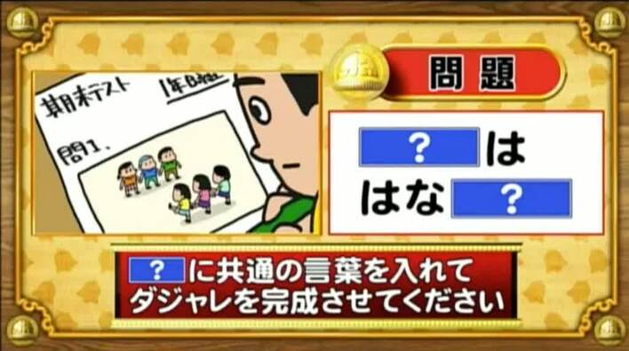 最初は「脳ミングアップクイズ」から、ダジャレ穴埋めの問題。「?」に共通する言葉を入れてダジャレを完成させてください。