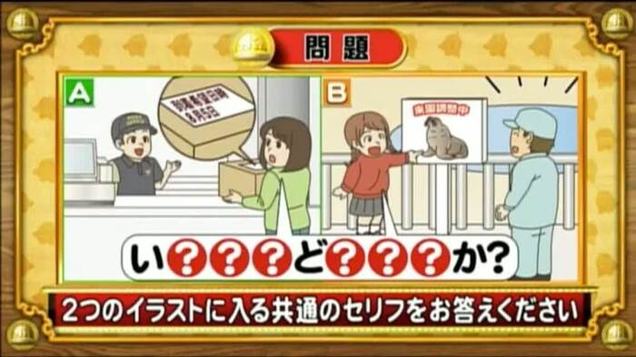 次は、共通セリフ問題。次の2つのイラストに入る共通のセリフを答えてください。