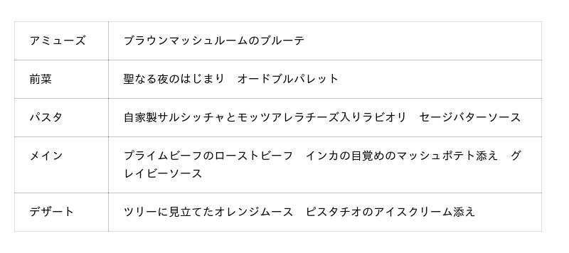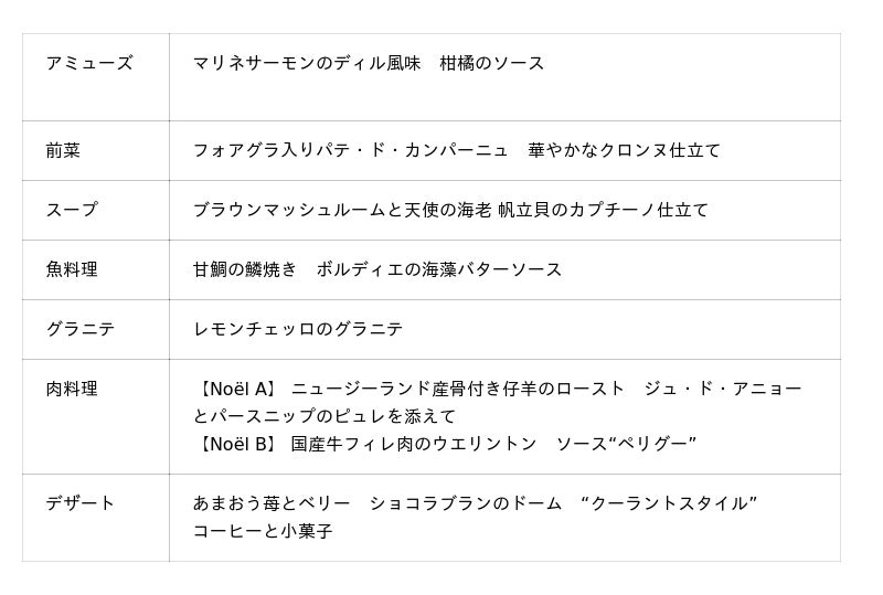 【メニュー】 聖誕晩餐 ¥16,000(グラスポメリーブリュット ロワイヤル付き)