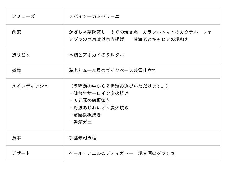 (両コースともグラスポメリーブリュット ロワイヤル付き)