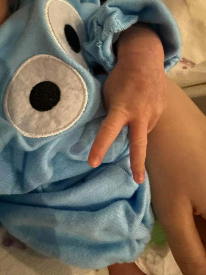お顔は写っていませんが、スライム服を着た双子どちらかが小さな手でピースするようなポーズも収めた中川さん。