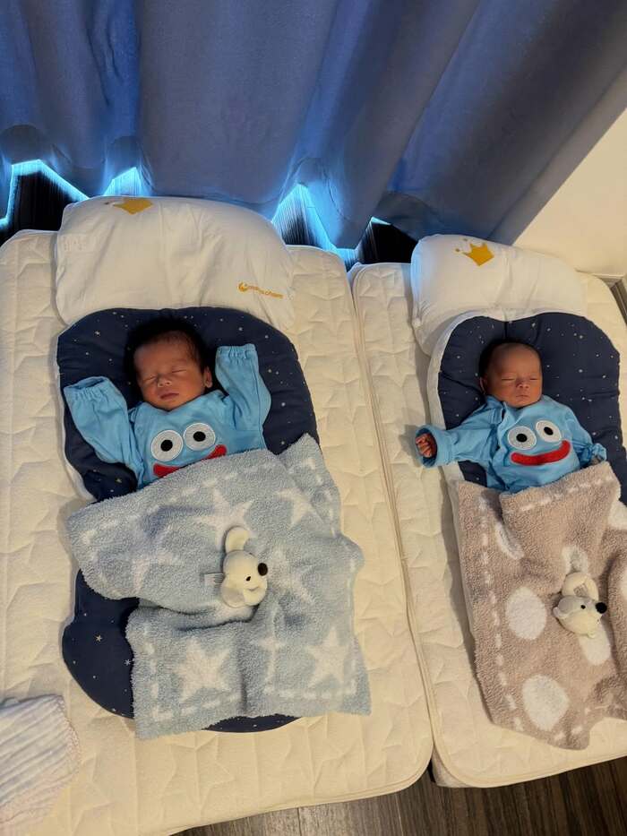 また、色違いの毛布を掛けられて、スヤスヤと眠る双子の姿も見ることができ、あまりのキュートさにシャッターがとまりませんね!