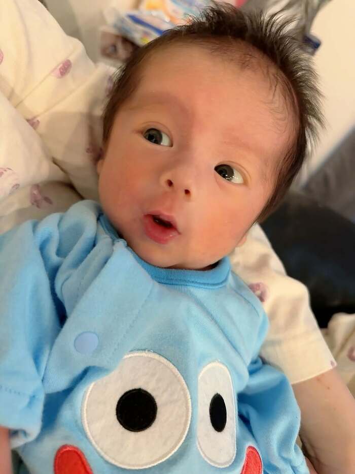さらに、目と口を開けて驚くような表情を見せる長男を中川さんが抱っこするショットや…。