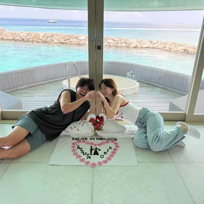今回の投稿では「Our Maldives moments」とつづり、人気リゾート地・モルディブを堪能するショットを大公開しています。YouTubeチャンネルでは「一生忘れない最高の新婚旅行になりました!!」と明かしていて、なんともラブラブな姿が収められています。