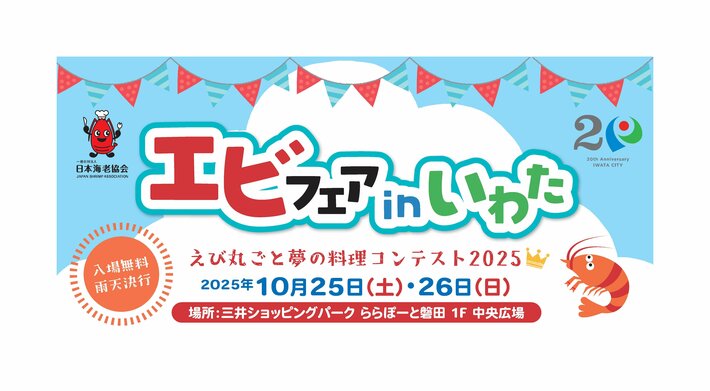 2024年12月に国内最大級のバナメイエビの陸上養殖施設が完成した磐田市で、10月25日・26日の2日間「エビフェアinいわた」を開催します。