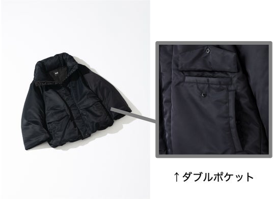 ■ボリュームのある袖とフラットな表面感で、モードに仕上げたショートブルゾン