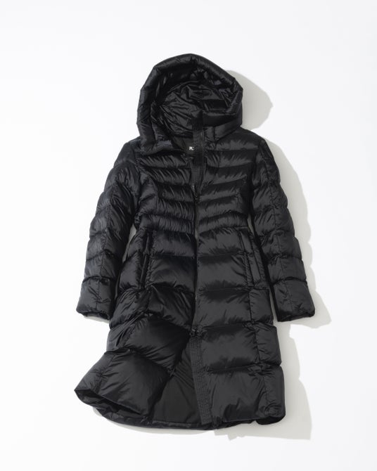 「リモンタパデッドロングコート」は、上半身にフィット感を持たせつつ、裾に向かって緩やかに広がる“プリンセスライン”が、美しいシルエットを描くロングコートです。ウエスト部分をゴム寄せにし、上半身のステッチを細かく、下半身を広めに設計することで、ボディラインにメリハリがつき、着るだけでスタイルアップが叶います。立体的なフードは小顔効果もあり、ファスナー付きポケットで実用性も兼備。