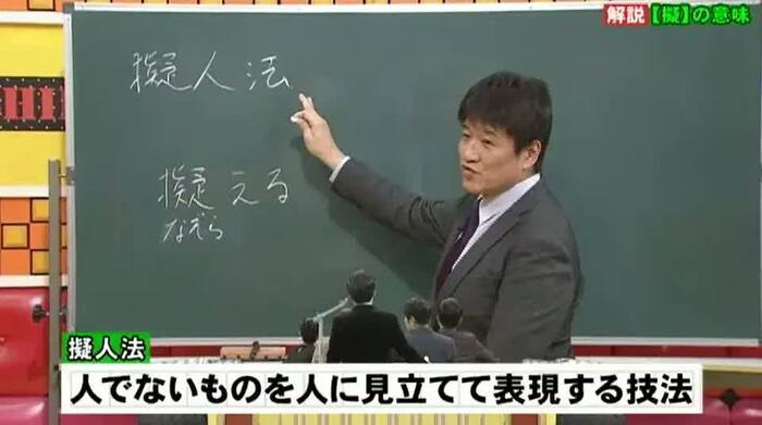 林先生は、番組で出題された「擬人法」と「絆」という漢字の意味について教えてくれた。