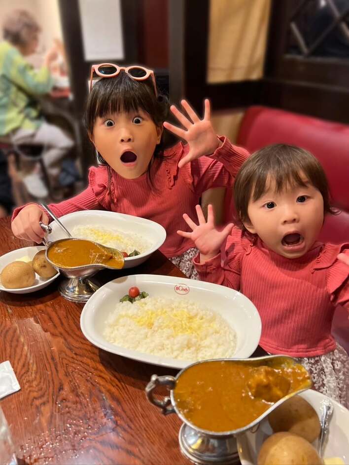 今回の投稿では「カレー屋さんに行きました いっぱい食べて元気注入」と、妹・ひーちゃんとの姉妹ショットを公開。
