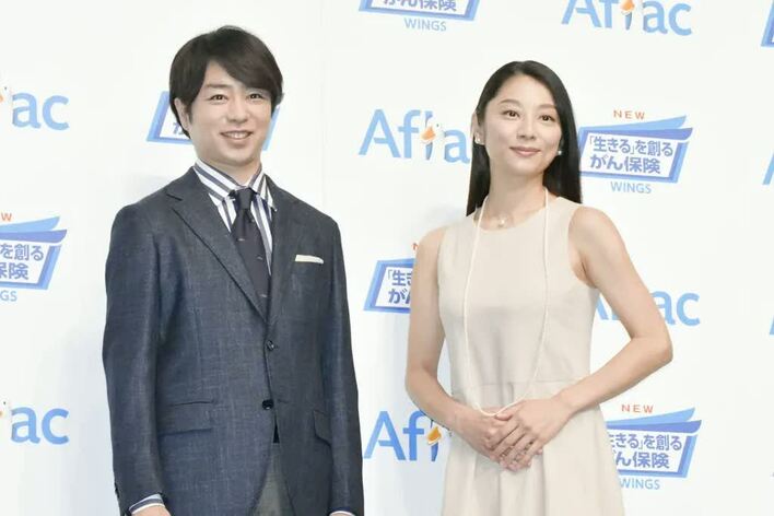 櫻井翔さんと小池栄子さんが8月21日、CMキャラクターを務めるアフラック「『生きる』を創るがん保険 WINGS」の新商品発表会に出席しました。