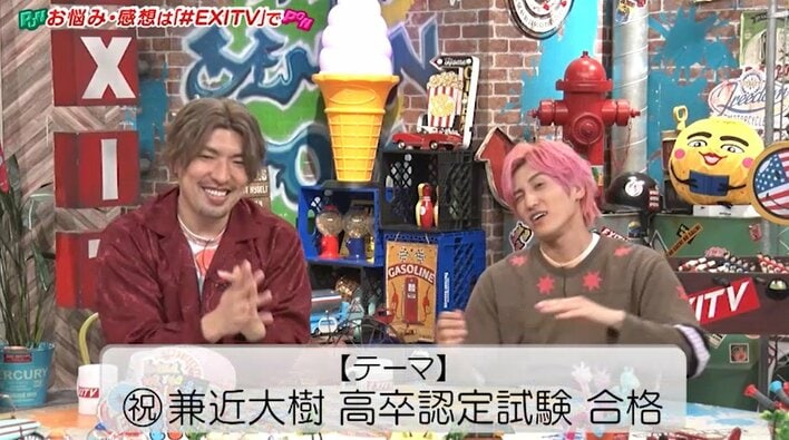 EXITがゲストとリラックスしたトークを繰り広げる『EXITV』(フジテレビ)。10月21日の放送回では、冒頭のフリートークで兼近さんの合格を相方のりんたろー。さんがお祝いする一幕がありました。