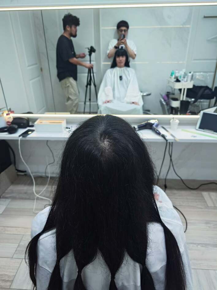 写真には、胸下辺りまで伸びたロングヘアを、いくつか束にして結ばれる友保さんの後ろ姿が。カットされた髪の毛は、ヘアドネーションするようですが、一体どんな姿にイメチェンしたのでしょうか…?