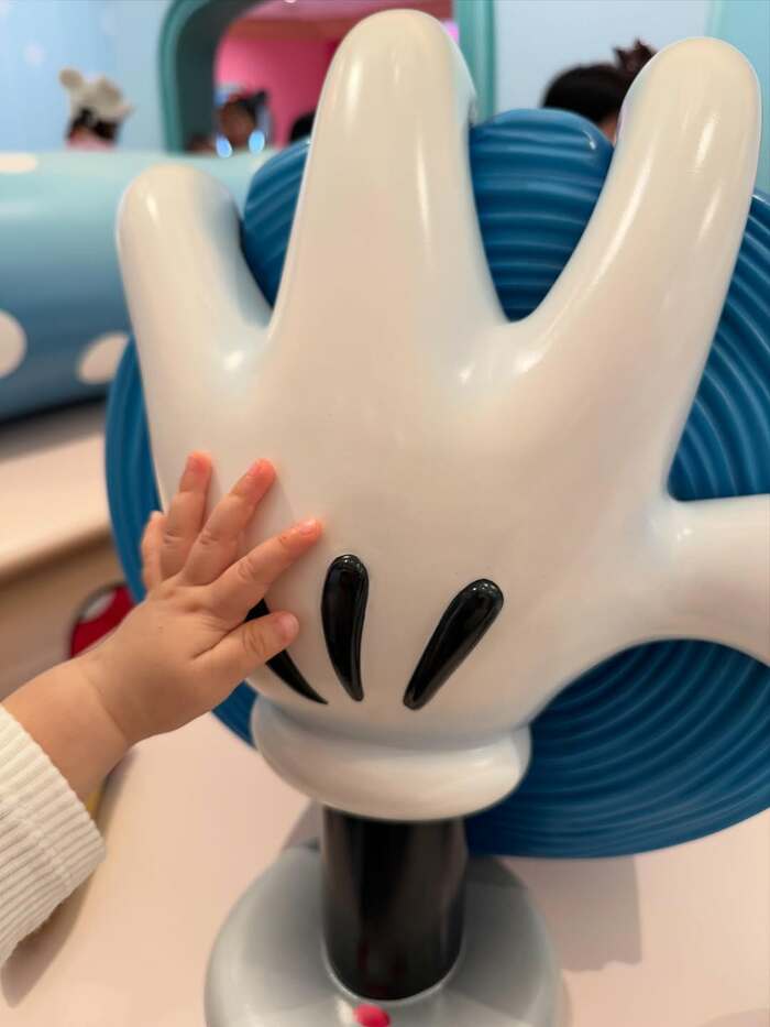 別の写真では「ミニーのスタイルスタジオ」の中にあるミニーマウスの手に、そっと小さな手が重ねられていて、見ていて思わずほっこりしてしまう1枚です。