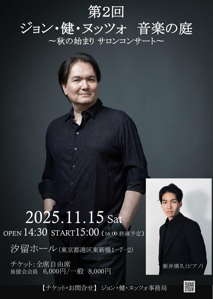 「チケットペイ」は、2025年11月15日(土)に開催される「第2回 ジョン・健・ヌッツォ 音楽の庭」のチケット販売を開始いたします。