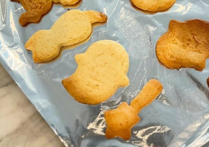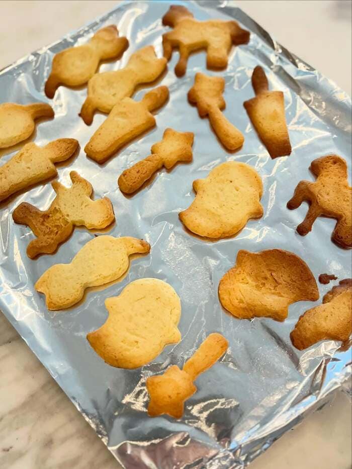 投稿で公開した写真を見てみると、アルミが敷かれたバッドの上に、様々な形をしたクッキーが並べられているのが分かります!