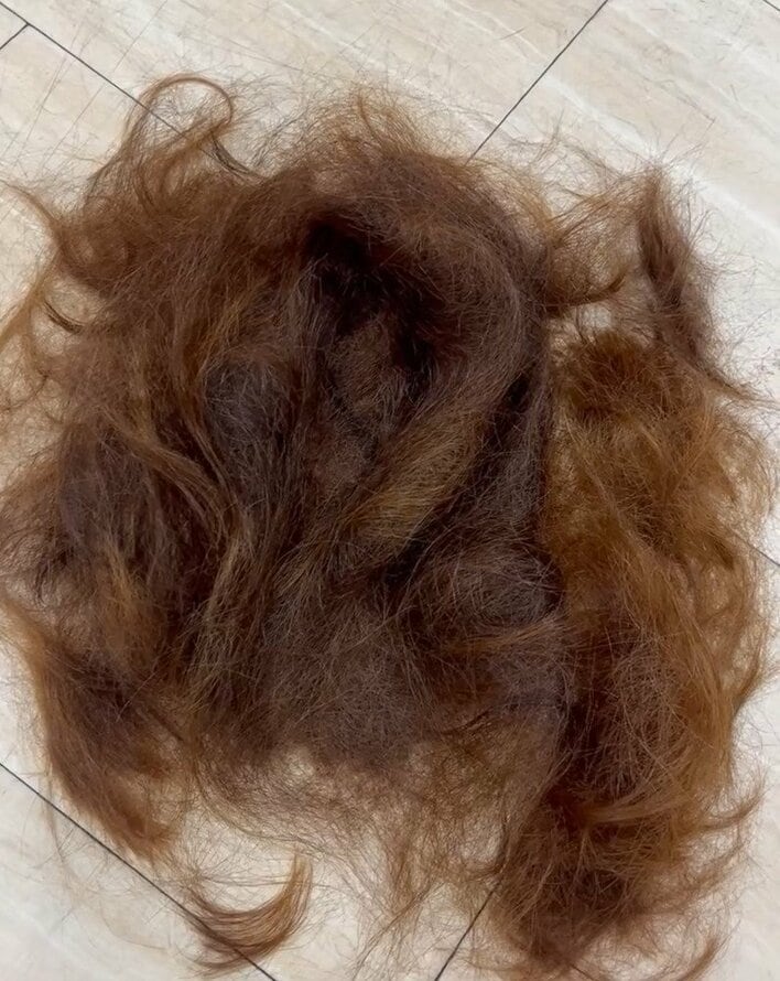 投稿の動画では、バッサリとカットされた髪の毛が床に集められた様子を見て「46歳ありがとう!」と1年かけて伸びた髪の毛に別れを告げます。