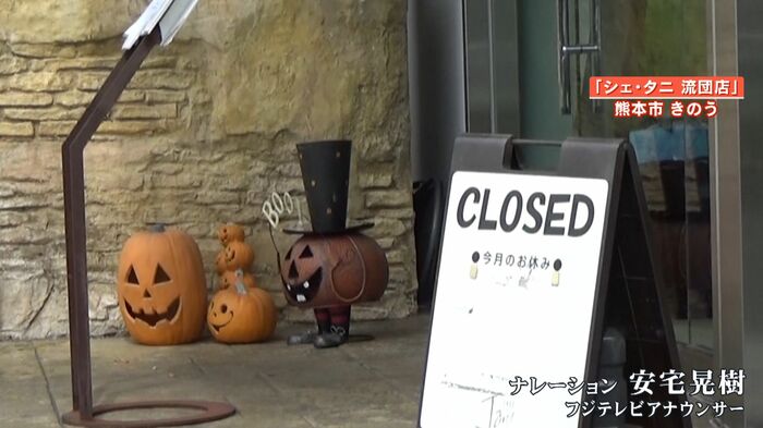 同市内の別の店舗・流団店を取材すると…、店の前にハロウィンの装飾がされ、大通りに面するかなり大きい建物の店も、同様に臨時休業となっていました。