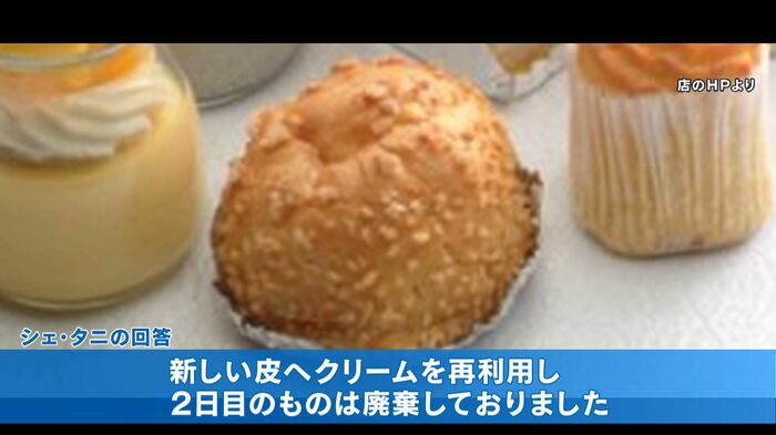さらに、一部で報道されているシュークリームやケーキのクリームの再利用について、シェ・タニはこう説明しました。
