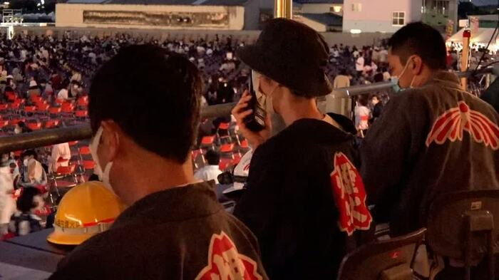 本番中、松井さんは打ち上げ現場との連絡を担うポジションにスタンバイ。