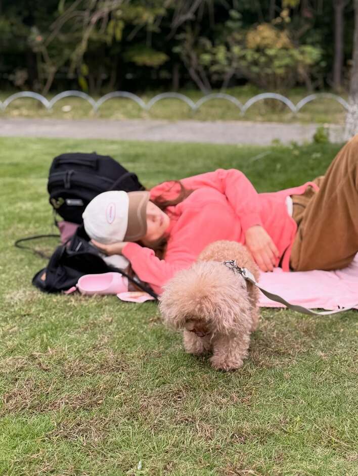さらに、もふもふとした毛がかわいらしい愛犬のそばで、ごろんと寝転がる姿や…