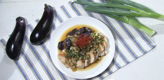 8月28日放送のフジテレビ『くいしん坊!万才』では、「鶏むねとなすの香味和え」が紹介されました。