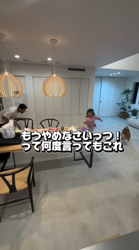 そして次に尾形さんは、テーブルの周りをぐるぐると走るさくちゃんを追いかけます!