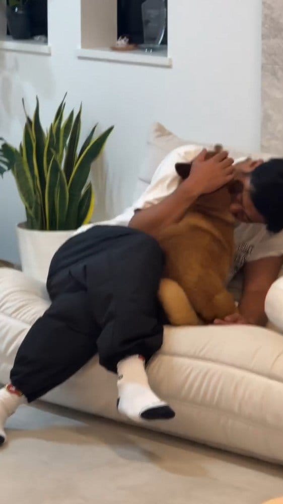 さくちゃんとのじゃれ合いが終わると、順番を待っていたかのような愛犬・ミクちゃんの姿が!