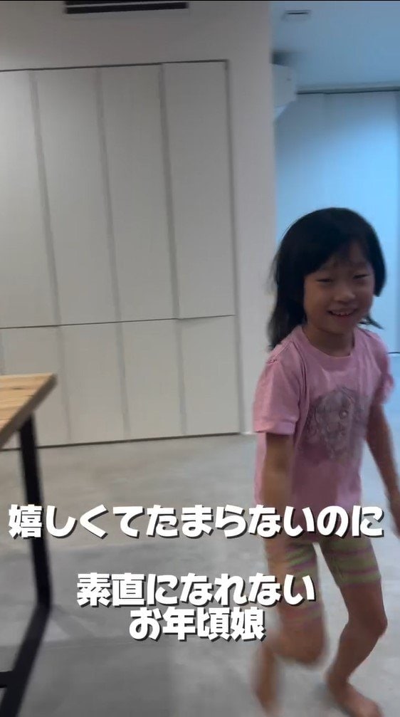 あいさんは投稿文で「「パパ〜!」って泣きながら抱きつくと思いきや、まさかのツンデレ娘。笑 お年頃ですかね?」「素直になれない、でも本当は嬉しくてたまらない、そんなさくちゃん」と、つづっています。