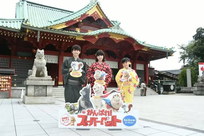 8月24日、映画「DC がんばれ!スーパーペット」の“スーパーパワー”スポットで大ヒット祈願!公開直前イベントが行われ、松岡茉優さん、市川ぼたんさん、梶裕貴さんが登場しました。