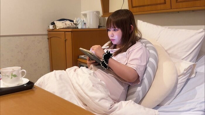 翌日の19日、入院中の中川さんを訪ねると…タブレットに向かって、真剣な表情で絵日記を書いていました。