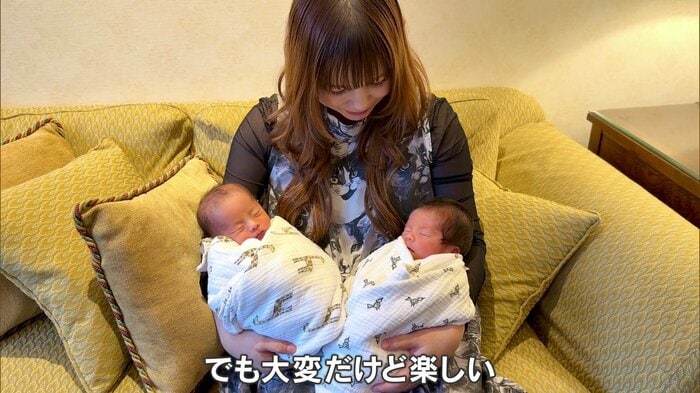 うれしい本当に、なんか人生変わりました。自分の命よりも大切な2人が今頑張って息してくれて、ミルク飲んでくれて。すごい!双子たちとこれからはずっと一緒に歩んでいく人生になります。うれしいね。
