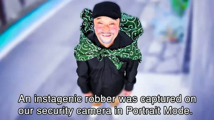 An instagenic robber was captured on our security camera in Portrait Mode.