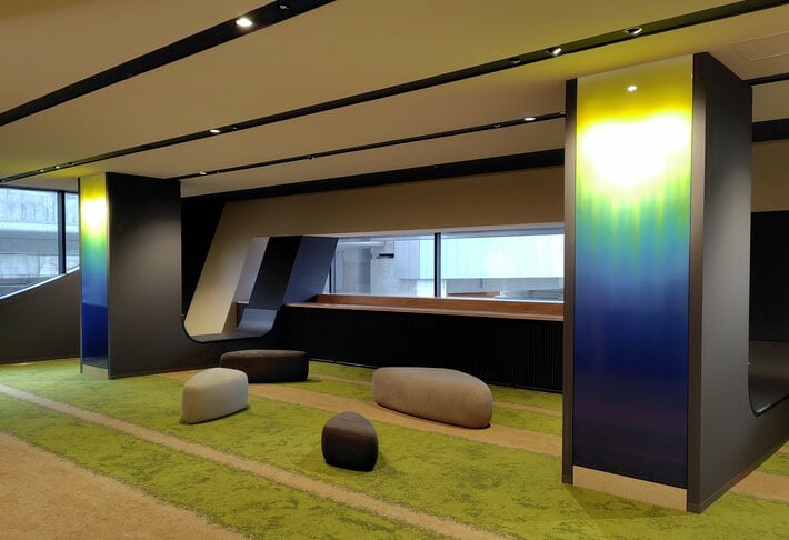 徳田八十吉の代表作「瑞穂」(みずほ)「猩々」(しょうじょう)のデザインを活かした大型の陶板柱*設置場所