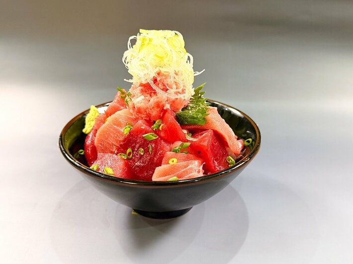 ◆本まぐろの美味さを余すところなく伝えるため、本まぐろ丼も同時にご提供。1日限定5食販売の「まぐろてんこ盛り丼」は、ぶつ切りまぐろとネギトロが400g以上も盛られており価格は赤字覚悟の850円(税込)。ラーメンと併せて本まぐろのとろの旨味をお腹いっぱい、コスパよくご堪能いただけます。