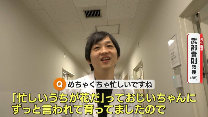 26歳で、世界で初めてiPS細胞を使って小さな「肝臓の芽」を作ることに成功。その後も再生医療の分野で活躍し続け、世界中から“未来のノーベル賞候補”と注目されている、武部貴則教授(38)。