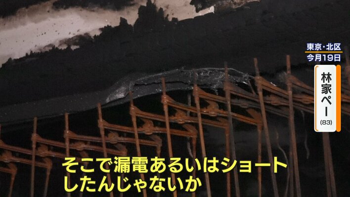 (火災原因について)古いコードがずっとあってね、そこで漏電あるいはショートしたんじゃないかって消防署の意見。一番これが火事の発生地なの。