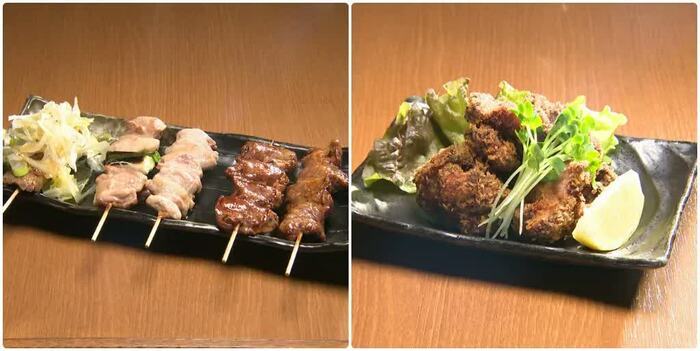 小澤征悦が来店したのは、絶品の焼き鳥や焼きとんをリーズナブルに味わうことのできる、連日サラリーマンでにぎわう人気店「丸鷹酒場」。秋田県ブランドの「桃豚」を朝締めで直送し、炭火で焼き上げた炭火串焼5本盛(はらみ、タン、ネギレバー、ねぎま、せせり/700円)は、「うまい!」とサラリーマンから大人気。塩麹と紅生姜で下味をつけ、サクサクのパン粉で二度揚げする丸鷹鶏の唐揚げ(450円)は、女性のお客さんイチオシのメニュー。生ビールで乾杯を。※価格は、すべて税別。