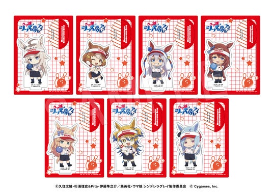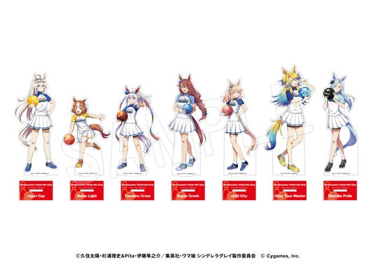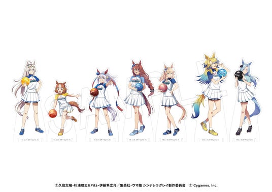 ボウリングを楽しむウマ娘たち7人の新規描き下ろしイラストを使用した「アクリルフィギュアスタンド」や「グリッターアクリルアートパネル」のほか、カプセルトイの「ましかく缶バッジ」や、クレーンゲーム景品の「BIGアクリルスタンド」など、コラボならではの新作アイテムが登場!