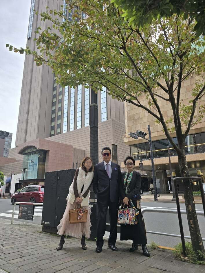 高橋さんは、黒のシックなスーツに身を包み、サングラスをかけ、ポケットに手を入れてすらりとクールにポージングしていて、美恵子さんは、黒いジャケットに黒いロングスカート、首元には緑を基調としたスカーフを巻き、サングラスをかけた上品なスタイル、真麻さんは、ブラウンのトップスに、白のファーベスト、淡いピンクのチュールスカートを合わせたフェミニンなスタイルを披露していて、3人からは気品があふれています。