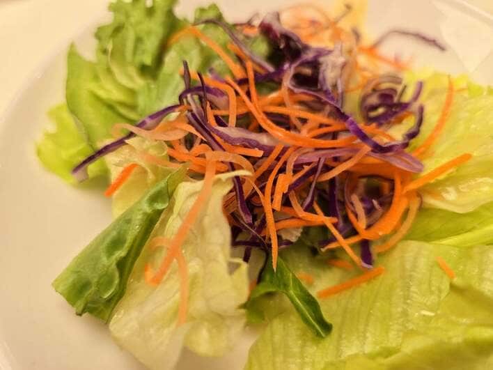 レタスに千切りされたにんじんや紫タマネギがたっぷりとのったサラダや・・・