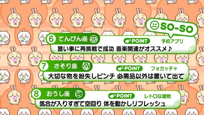 『めざましテレビ』で放送中の「ちいかわ占い」 テレビ放送がない日はお休みで、月~土:朝7時以降に更新予定です。
