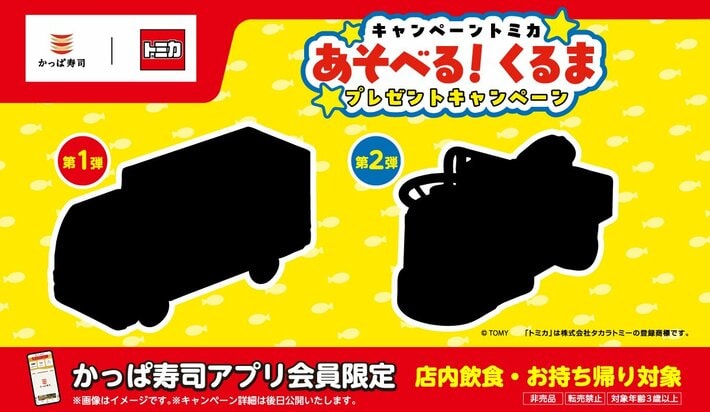 コロワイドグループのかっぱ寿司(カッパ・クリエイト株式会社 本社:神奈川県横浜市、代表取締役社長:山角 豪)は、ダイキャスト製ミニカー「トミカ」(発売元:株式会社タカラトミー)とのコラボキャンペーンを近日、開催することをお知らせいたします。