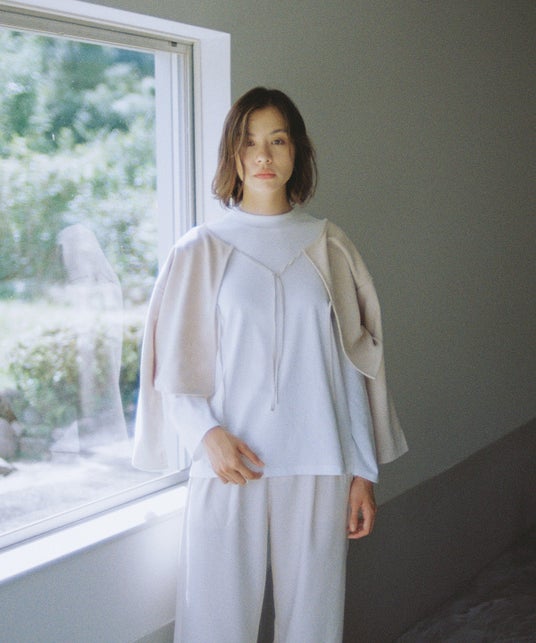 ほどよい厚みと柔らかな肌ざわりが心地よく、1枚でもきれいに決まり、重ね着にもなじむ万能な一着。