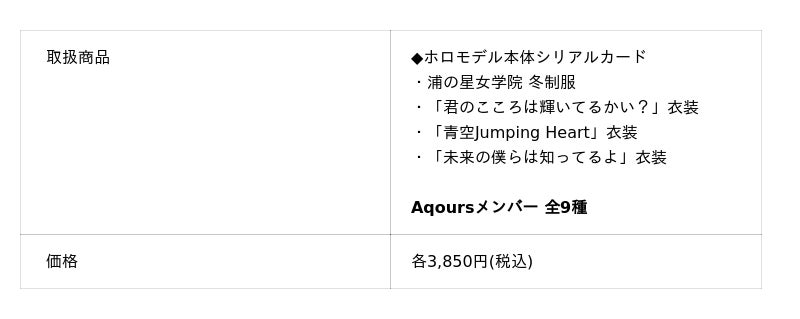 また、ホロモデルなどの商品を販売予定です。
