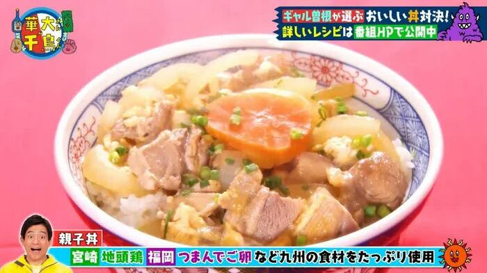 華丸さんは、宮崎県産の「地頭鶏(じとっこ)」や福岡の「つまんでご卵(らん)」など、九州各地の厳選した食材を取り寄せて「親子丼」を作りました。