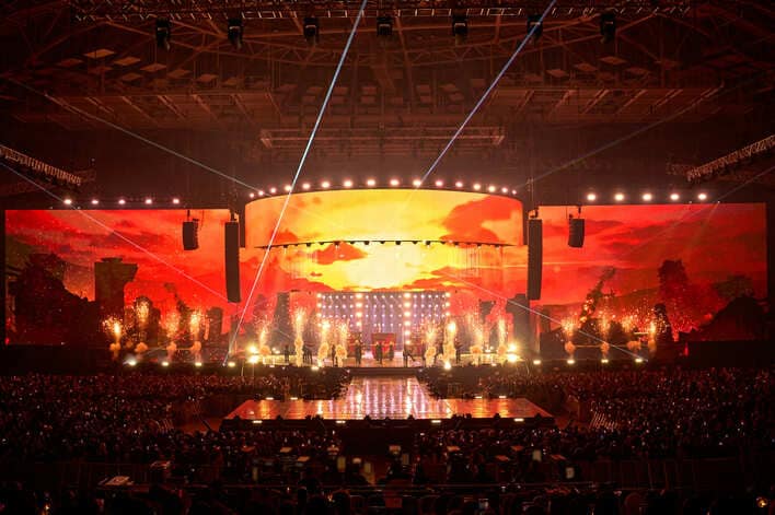 場内に流れる音楽に合わせて、観客が合唱や手拍子で盛り上げると、メンバーがステージに登場しました。